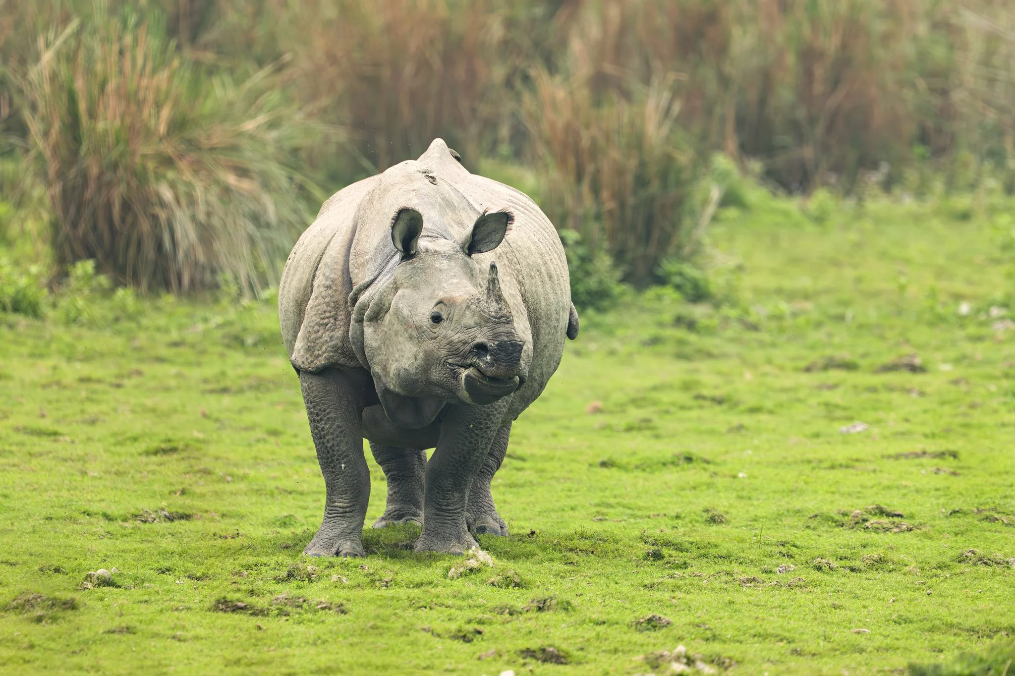 Flying into Guwahati and driving east into Assam, the landscape shifts dramatically. The road to Kaziranga National Park cuts through tea gardens and small villages, with the Brahmaputra River a glittering presence to the north. By the time you reach the park boundary, the floodplain grasslands have opened up and you're already scanning the tree line.